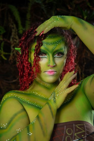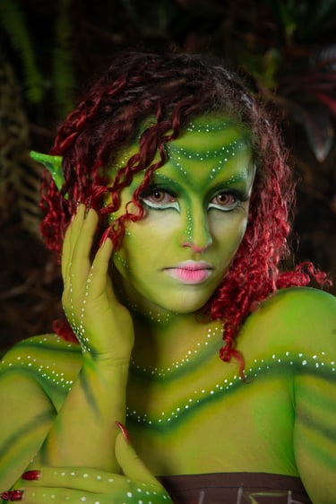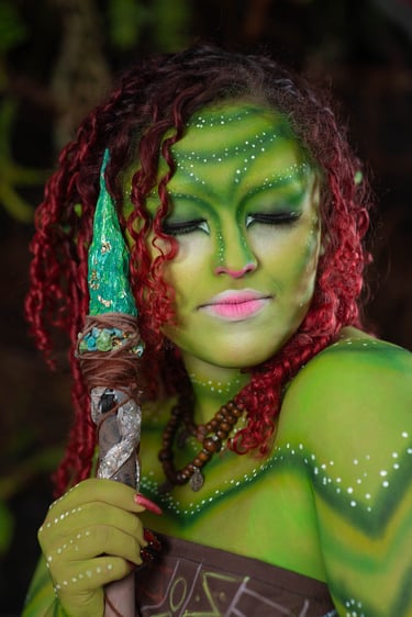 Mi proyecto final en la academia de belleza Montalvo fue un maquillaje artístico de cuerpo completo inspirado en la esencia visual de la película Avatar, pero con un enfoque propio y original. Busqué salir de lo común, utilizando una paleta de verdes en distintas gamas para crear una conexión profunda con el bosque y la naturaleza, transmitiendo vida, armonía y energía en cada detalle del maquillaje.